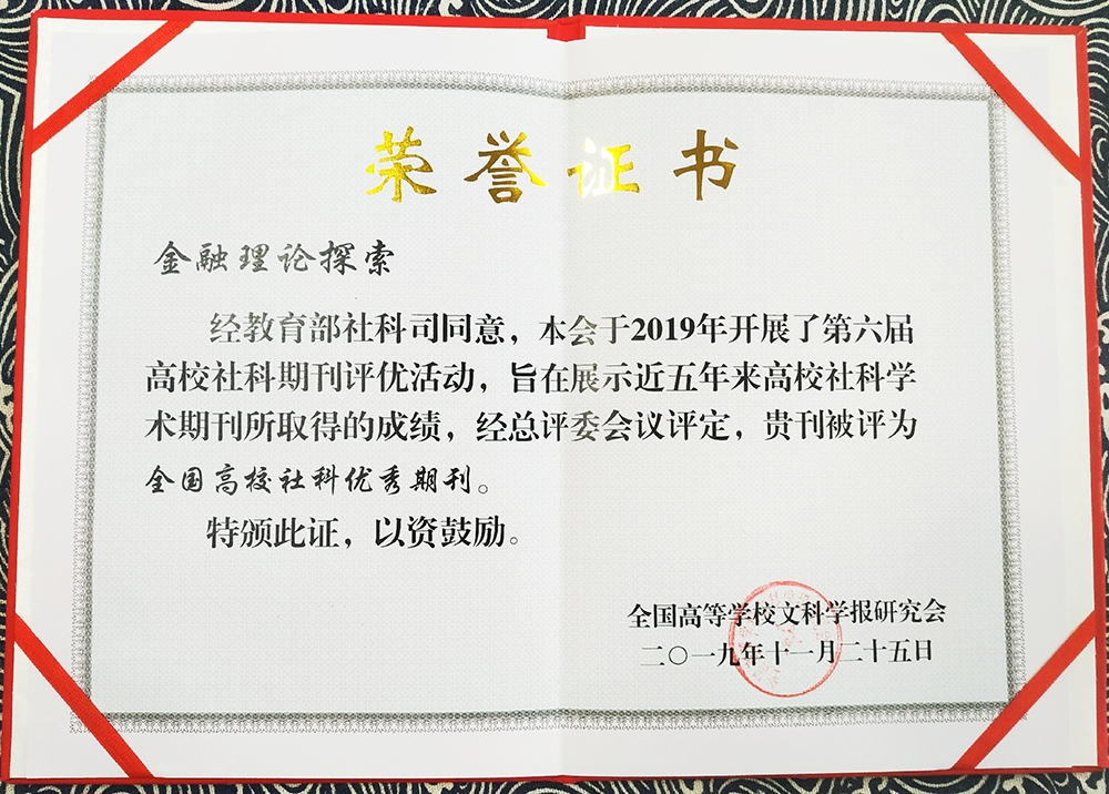 全国高等学校文科学报研究会是经中华人民共和国教育委员会和国家新闻出版署批准成立的,属国家一级学会。这次全国高校社科期刊评优活动是对五年来全国高校社科学术期刊办刊成绩的检阅,我校学报获得多个奖项,体现了学术界和期刊界对《金融理论探索》高水平办刊质量和优秀编辑团队的充分肯定和认可。