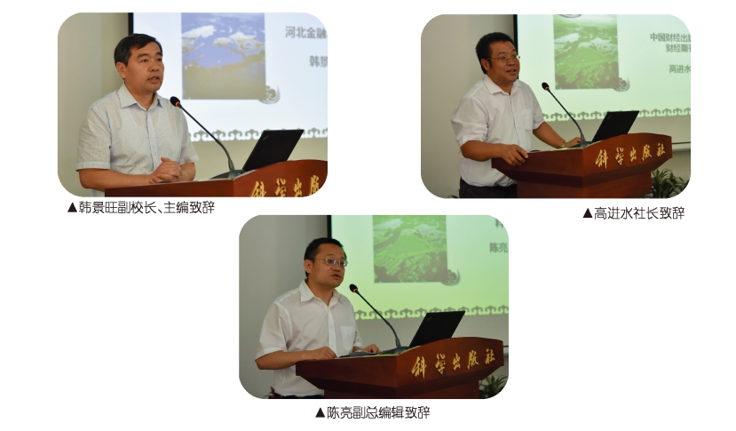 中国特色社会主义经济建设协同创新中心梁琪副主任,中国财经出版传媒集团财经期刊总社高进水社长,南开大学财金研究所李志辉所长,科学出版社陈亮副总编辑,河北金融学院副校长、《金融理论探索》主编韩景旺教授出席论坛并致辞。