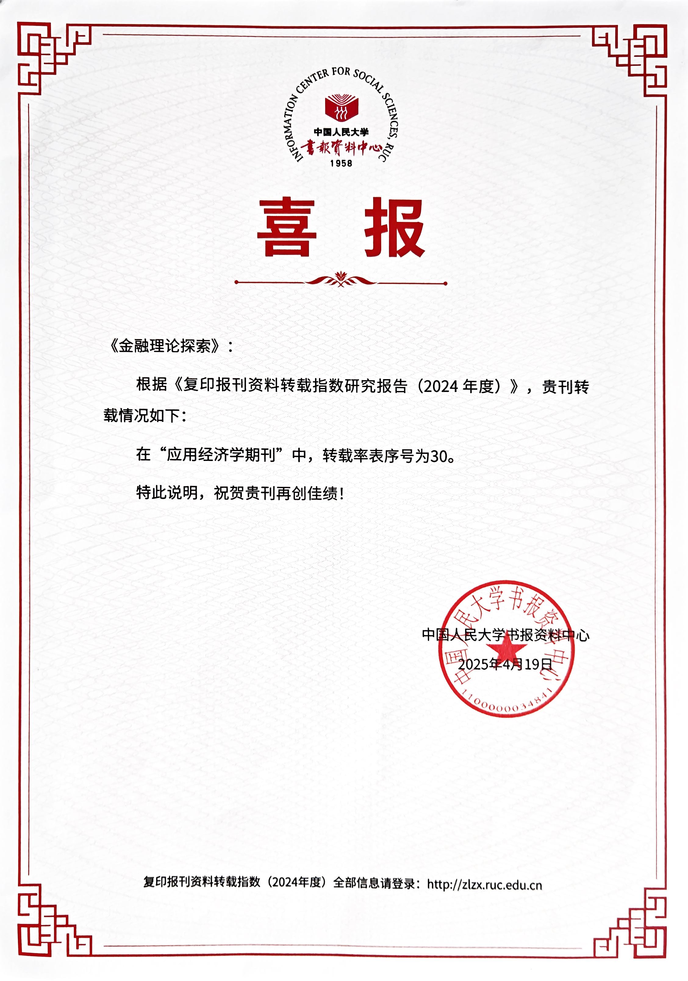 《金融理论探索》再次入选“复印报刊资料高转载期刊名录”